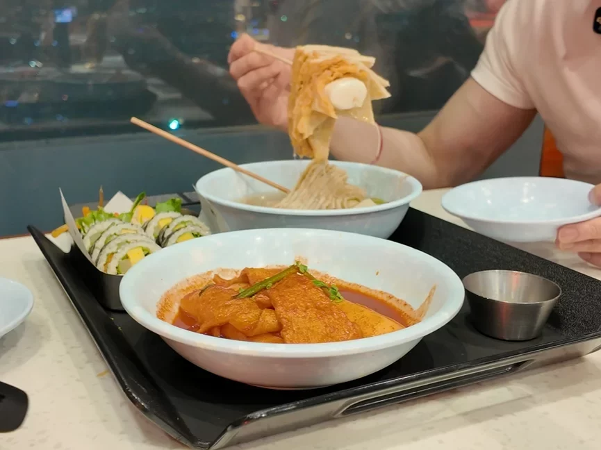 Durumi Bunsik honors this tradition while adapting it for N Seoul Tower’s unique context. The menu stays focused on bunsik essentials—gimbap, authentic tteokbokki, dakgangjeong (sweet-crispy fried chicken), ramyeon, and eomuk-tang (fish cake soup)—rather than diluting the concept with pan-Asian or Western dishes. This specialization ensures quality execution while maintaining the bunsik identity that Korean diners expect.