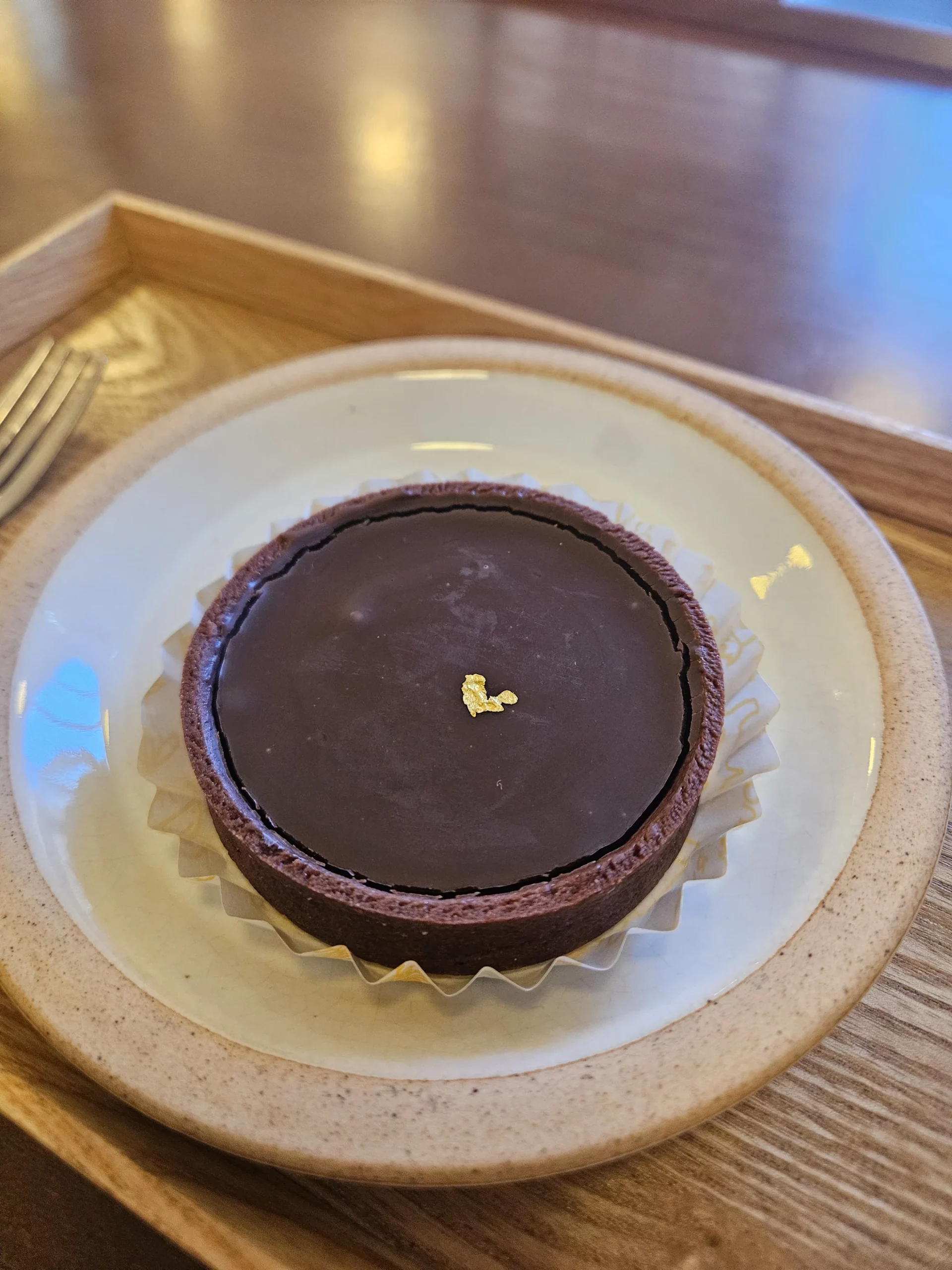 In Korean cafe culture, desserts function as complements to the coffee experience rather than centerpieces in their own right. The ganache tart occupies exactly this role — substantial enough to be satisfying, restrained enough to let the coffee speak alongside it..