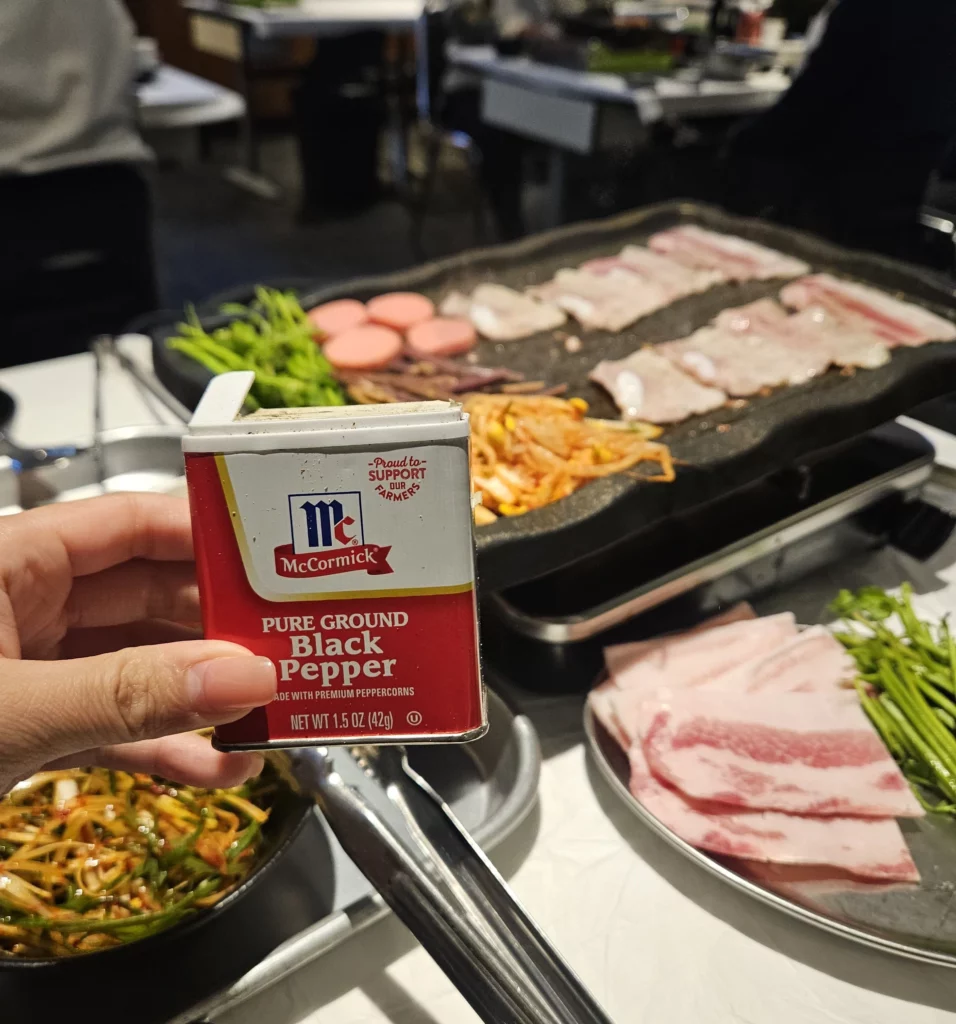*Pro-tip: Ask the staff for black pepper. They will provide a pepper shaker. Sprinkle some pepper on the samgyeopsal as you cook, it helps enhance the flavor!