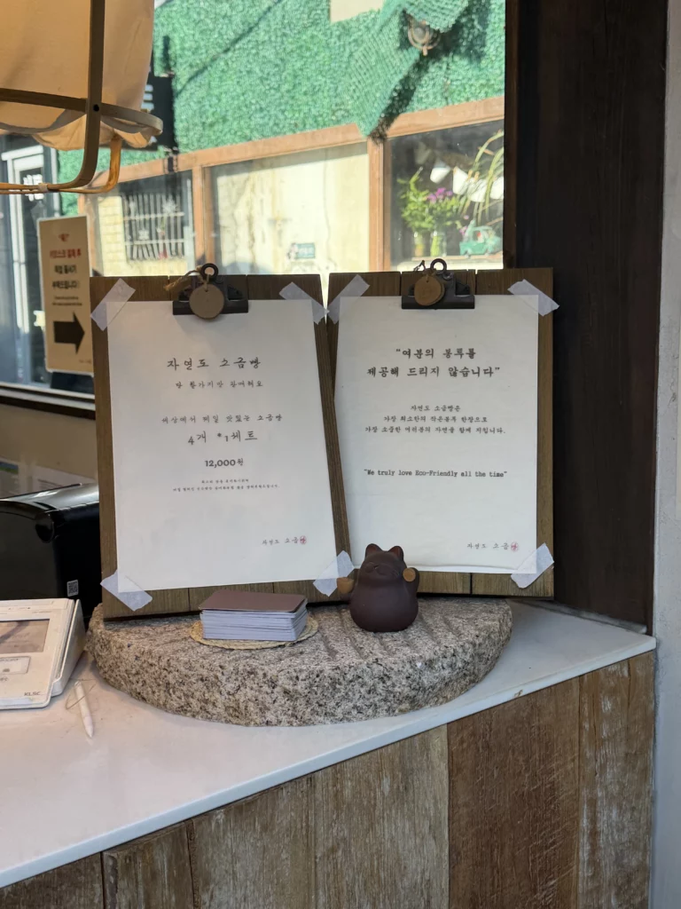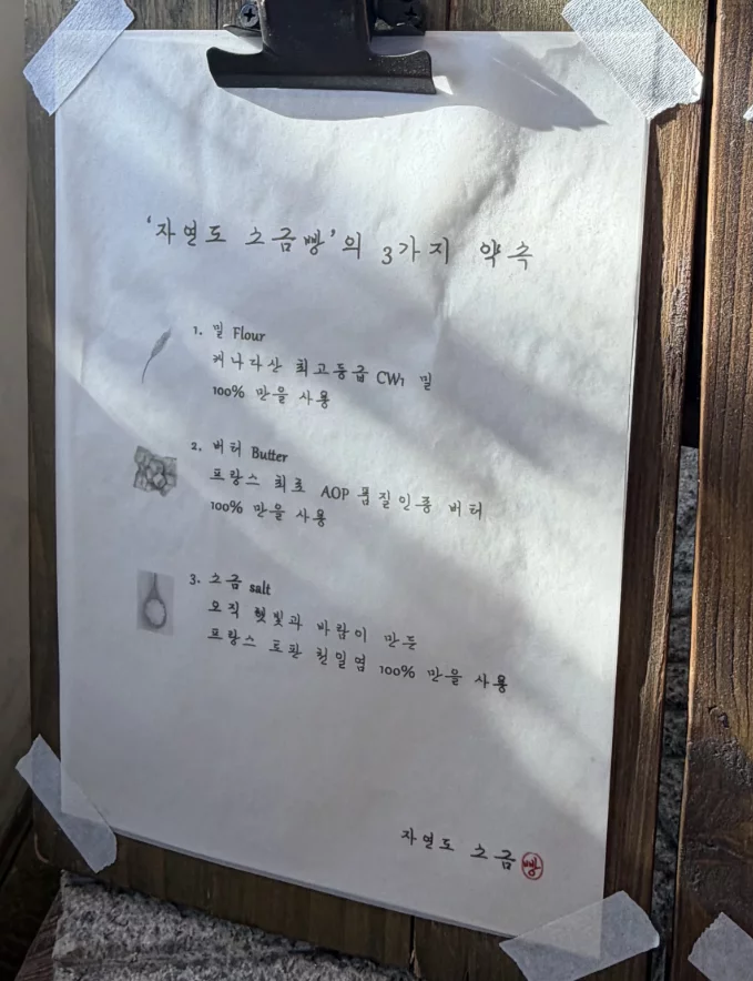 The beverage menu’s limited scope makes sense given Jayeondo’s identity as a bread specialist rather than full cafe. The adjacent "Jayeondoga" operation handles more extensive cafe offerings if you desire additional options while using the same shared courtyard space.