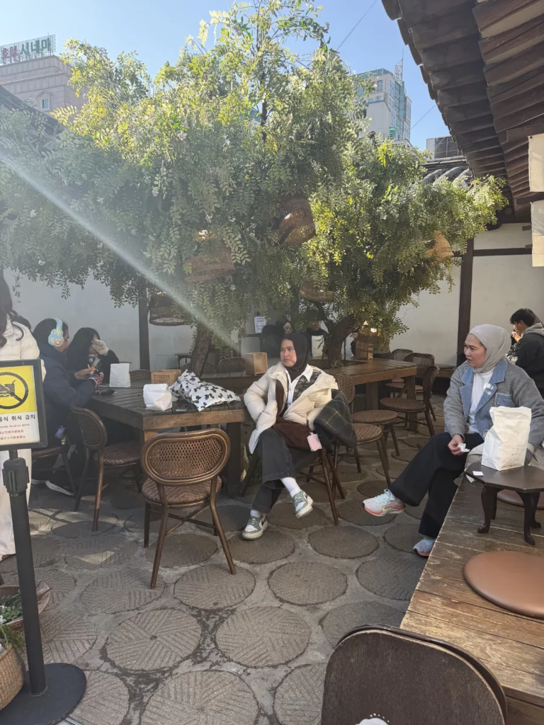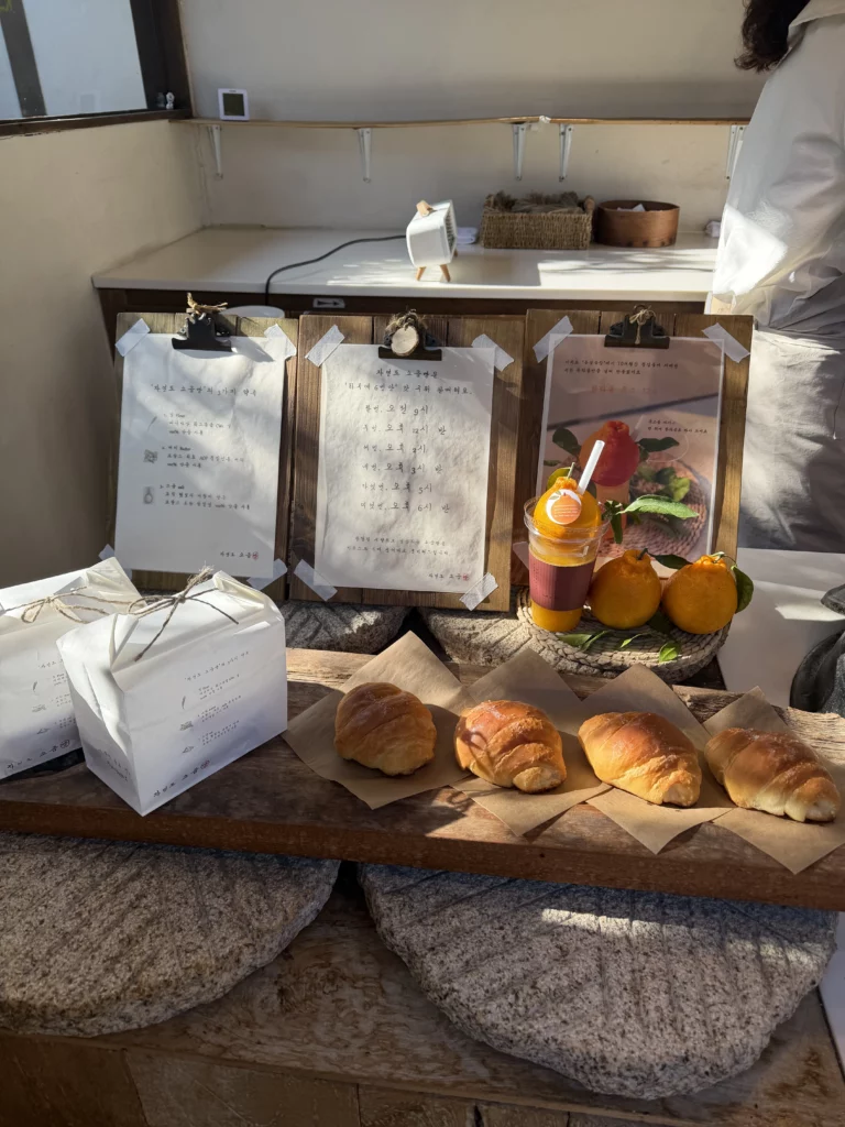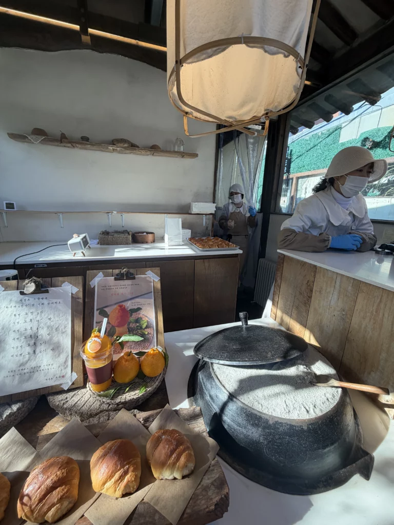 The central courtyard centered around the Hallabong orange tree deserves special mention. Traditional Korean architecture emphasized harmony between built structures and nature—courtyards weren’t empty spaces but intentional voids allowing natural elements (sunlight, rain, wind, trees) to permeate daily life. Sitting beneath this tree while eating butter-rich bread creates unexpected moments of tranquility amid Seoul’s relentless urban energy. The tree’s seasonal changes mark time’s passage—spring blossoms, summer shade, autumn fruit, winter branches—connecting modern food experiences to agricultural rhythms that historically governed Korean life.