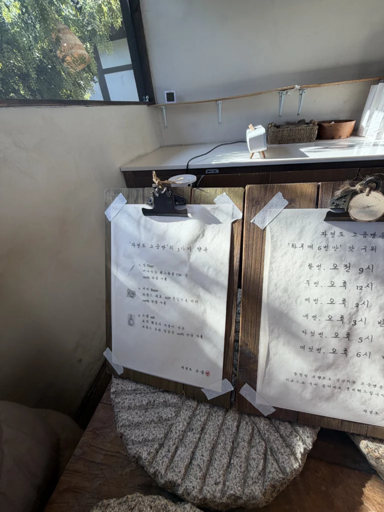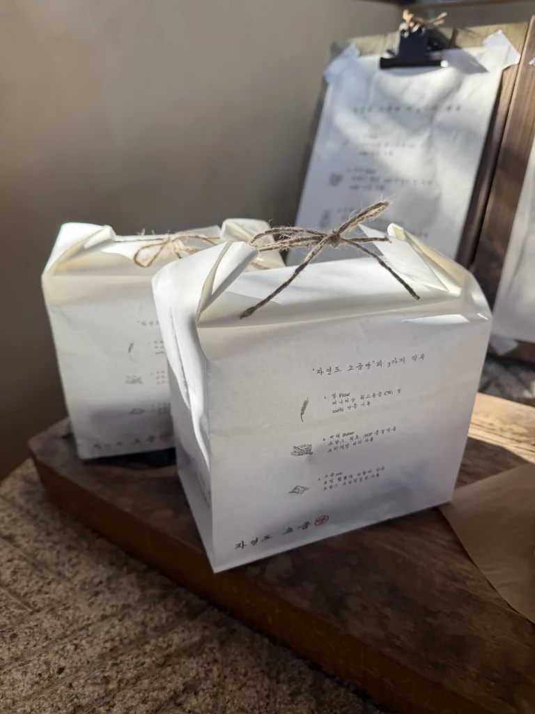 The pricing represents premium positioning in Seoul’s competitive bakery market. For context, convenience store bread rolls cost 1,000-2,000 won, while chain bakery items range 2,500-4,500 won. Jayeondo’s 3,000 won per piece reflects the ingredient quality, artisan production, and brand positioning. Most customers consider the price justified after tasting the difference—this isn’t industrial bread made from shortcuts, but genuine craft baking using demonstrably superior ingredients.