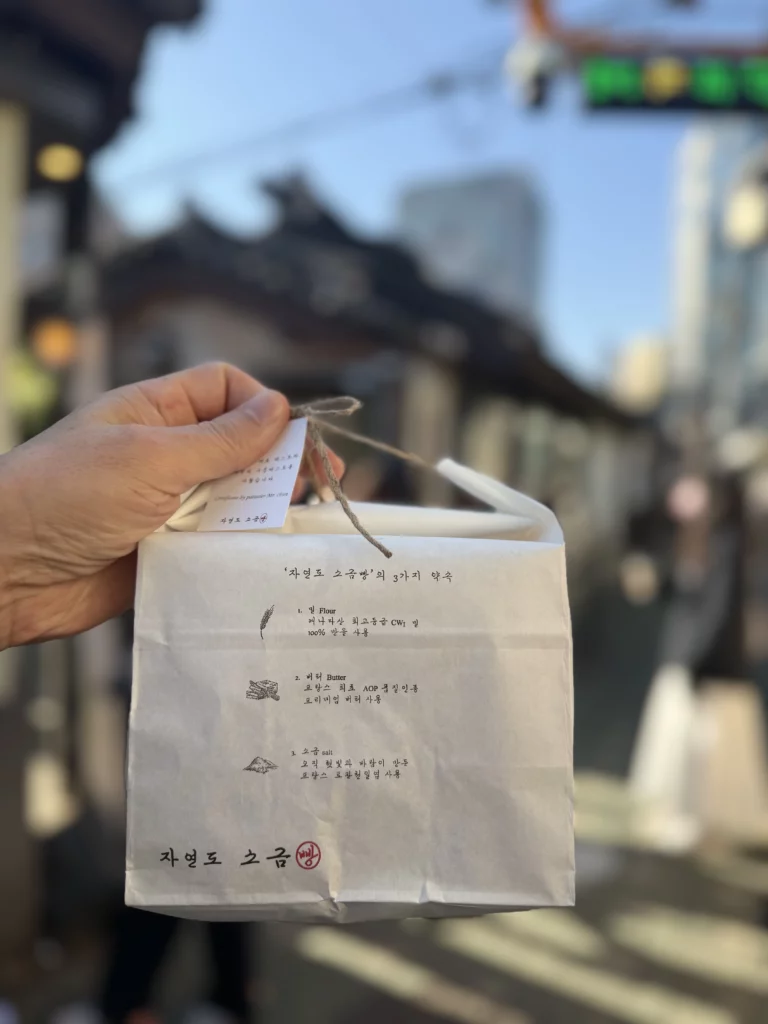 Jayeondo has transformed the simple concept of salt bread (소금빵, sogeumppang) into an art form, drawing lines that rival Seoul’s most famous restaurants. Located in the heart of Ikseon-dong’s historic hanok village, this bakery has become more than just a place to grab a quick snack—it’s a destination that captures the essence of modern Korean food culture while honoring the neighborhood’s century-old architectural heritage.