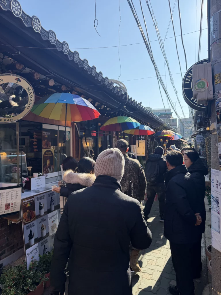 Avoid weekend lunch rush (12:00-2:00 PM) unless you enjoy people-watching enough to justify 45+ minute waits. Similarly, Korean holiday weekends become genuinely overwhelming—the small alleyways fill beyond comfortable capacity, and Jayeondo’s lines can exceed one hour even for the kiosk payment stage.