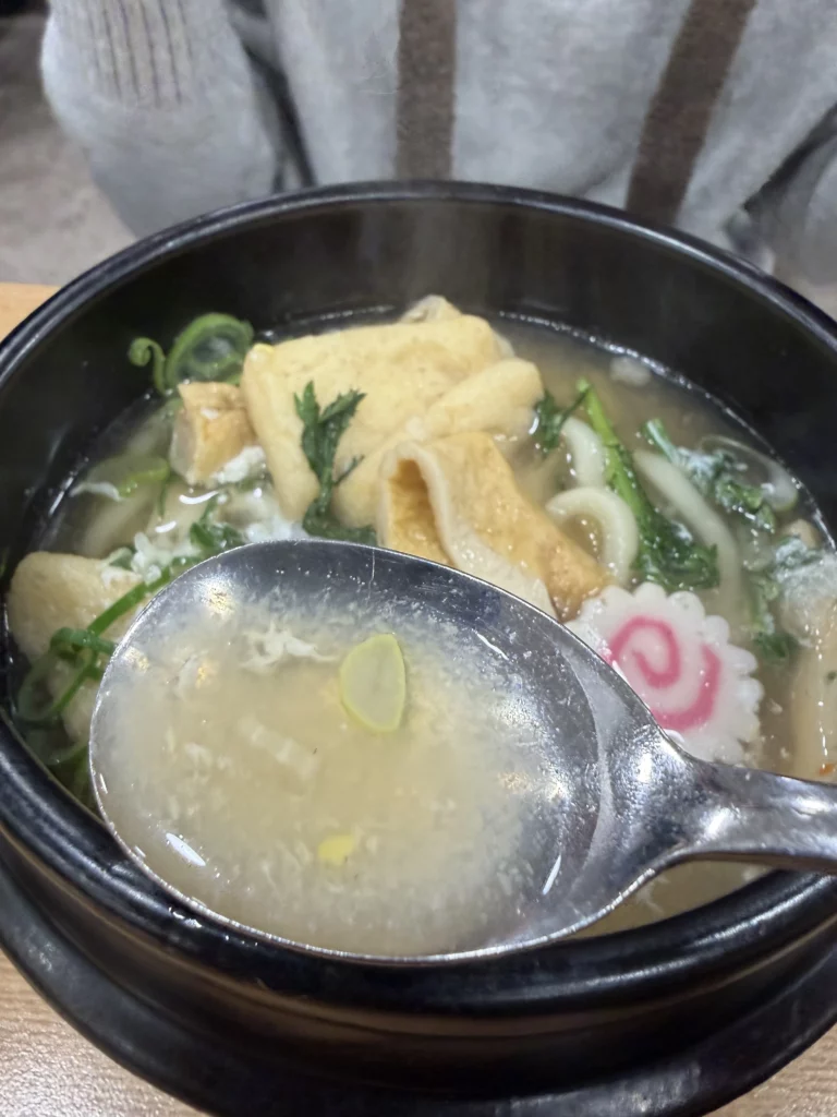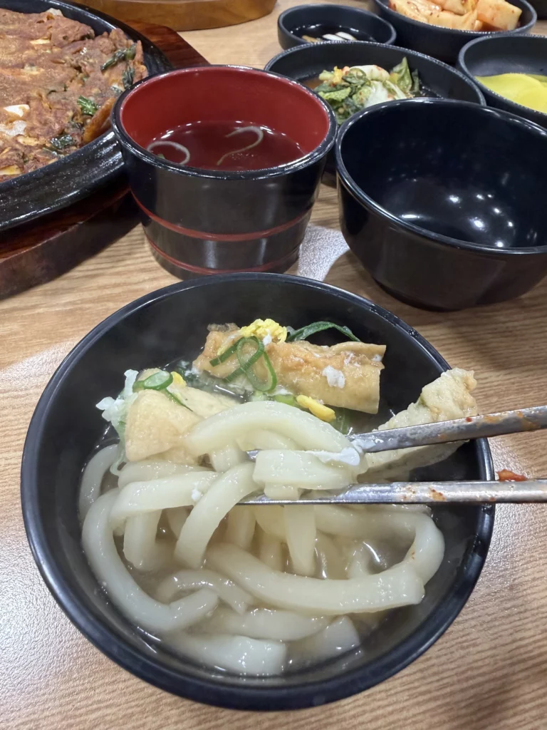 The broth demonstrated proper depth, rich with umami from kelp and bonito while maintaining clean, clear character. Unlike heavy, opaque broths in some Korean soups, udon broth should taste clean yet flavorful—complex enough to satisfy but light enough to allow multiple bowls without heaviness.