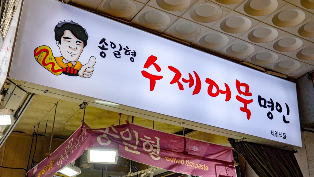 Song Il-hyeong’s Handmade Fish Cake Master (송일형 수제어묵 명인) operates within Anyang Central Market, one of Korea’s largest traditional markets with over 1,150 vendors spread across multiple buildings and streets. The market has served Anyang residents since 1961, making it not just a shopping destination but a living piece of local heritage.