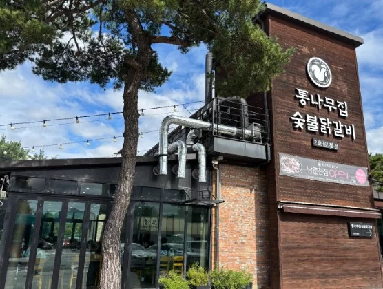 Tongnamujip Dakgalbi Branch No. 2 takes a fundamentally different approach to Chuncheon’s signature dish. Located at 655 Sinsaembat-ro in Sinbuk-eup, this restaurant attracts both locals seeking authentic flavors and tourists exploring Gangwon province’s culinary heritage. The restaurant’s name, "Tongnamujip," translates to "log house," perfectly reflecting the wood-fired cooking philosophy.